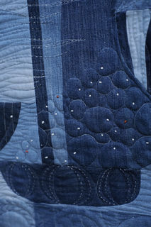 Machine piecing, turned edge applique, free motion quilting on Pfaff Quilt Expression 720, sashiko style hand stitching.